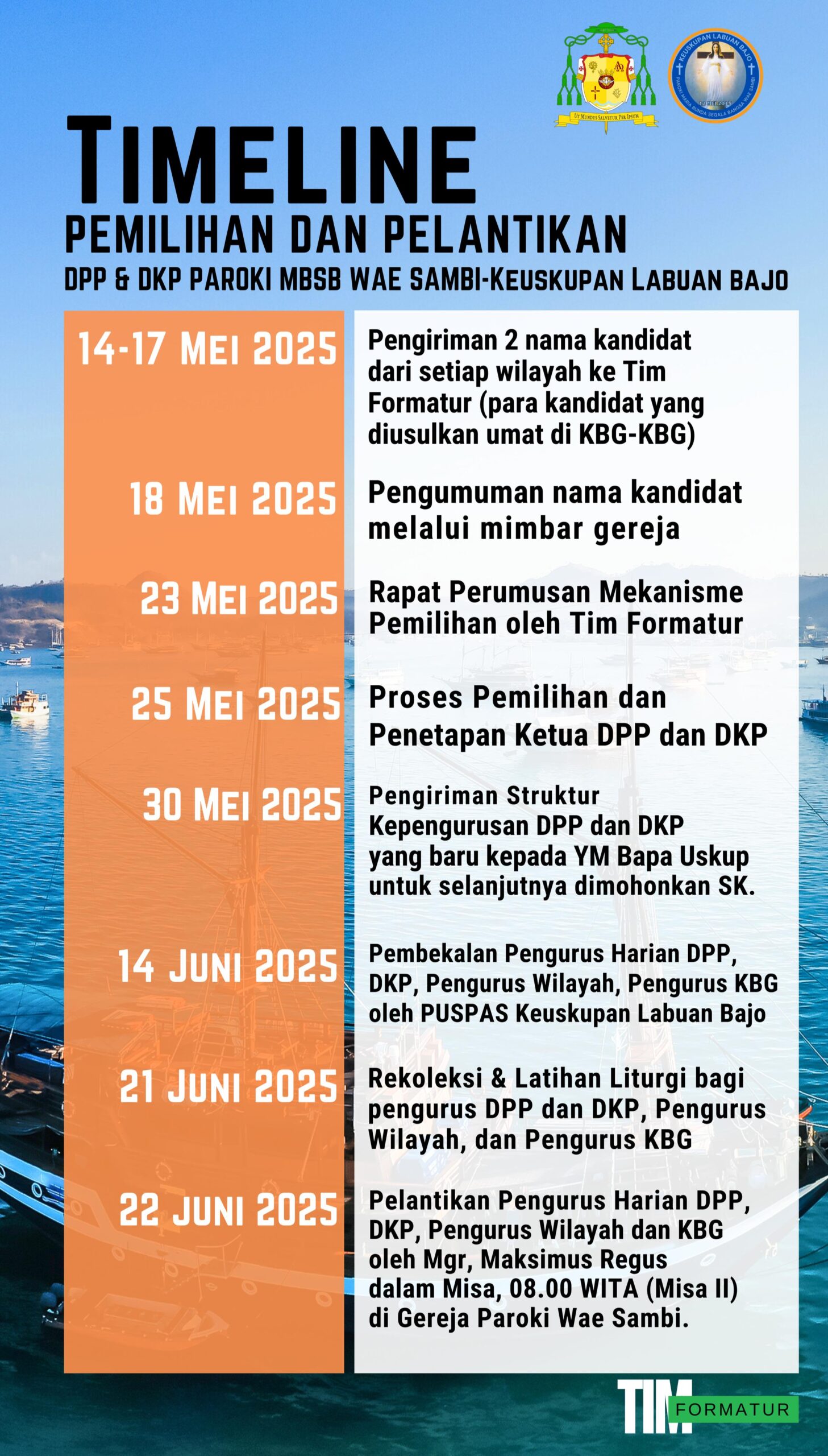 Selain memutuskan beberapa poin di atas, Tim Formatur juga menetapkan timeline atau jadwal proses, mulai dari penjaringan di tingkat KBG dan wilayah sampai dengan pelantikan.